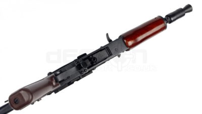 The E&L AKS74N AEG Essential offers a remarkable blend of quality and functionality. E&L Airsoft crafts these AK AEG replicas with stamped and folded steel, ensuring durability. The inclusion of real wood components highlights the intricate detailing that defines this model.