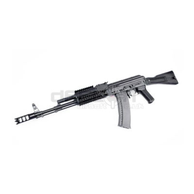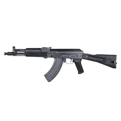 The E&L AKS-74UN Essential AEG is a remarkable replica of the iconic AK series. E&L employs stamped steel in its production, utilising the same factories that manufacture genuine AK47s. The construction makes this rifle incredibly solid, authentic, and visually appealing with its blued steel finish.