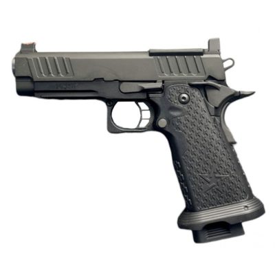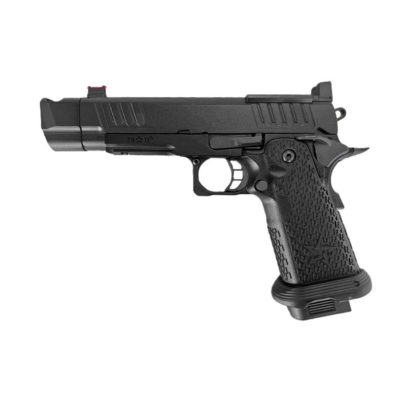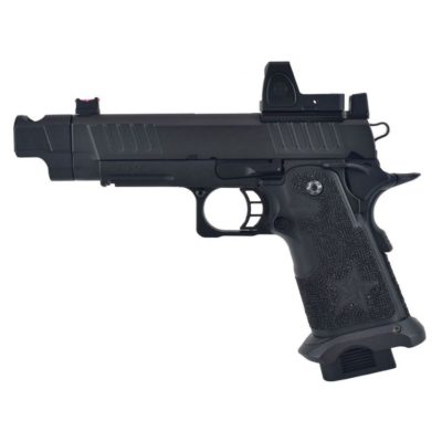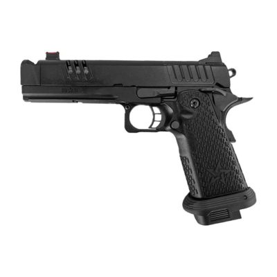 The EMG Staccato Licensed C2 COMP SOC 2011 Gas Blowback Airsoft Pistol represents a pinnacle of craftsmanship and design. This airsoft replica showcases the excellence synonymous with the Staccato brand, appealing to competition and range shooters. Its construction from high-quality aluminium alloy with a black oxide finish mirrors the original firearm.