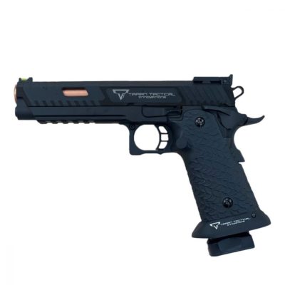The EMG x Armorer Works x Taran Tactical International Distinct JW3 Combat Master GBBP combines precision engineering and iconic design. This fully licensed airsoft pistol features a striking black finish and a full metal construction, ensuring durability and realism.