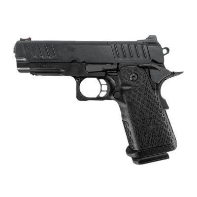The Staccato Licensed XL 2011 Gas Blowback T8 Airsoft Pistol excels in performance and design. This pistol is meticulously crafted for precision, offering an exceptional blend of weight, speed, and accuracy. It is ideal for high-level competitions, including USPSA and Tactical Games.