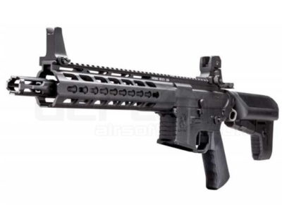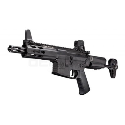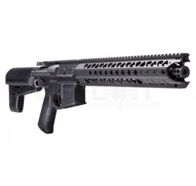 The Krytac Barrett REC7 SBR in black is a premium airsoft rifle, officially licensed through Evike Manufacturing Group. This model features a CNC machined aluminium alloy receiver and a robust handguard, ensuring durability and reliability.