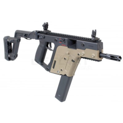 The Krytac Kriss Vector AEG Black/Tan is a remarkable airsoft replica that reflects the design and features of the original weapon. This model is officially licensed, ensuring authenticity in both appearance and performance. It includes various fire modes, such as safe, semi, burst, and full auto, providing versatility during gameplay.