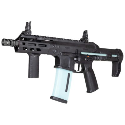 The KWA Originals: EVE-4 ICE Limited Edition showcases an innovative design aimed at airsoft players. This limited edition model features a striking all-black receiver complemented by an elegant ICE colour on the PDW stock. Included is a specially designed magazine to enhance its appeal.