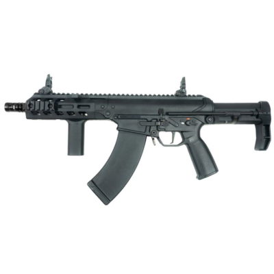 The KWA VM4 Ronin 10 SBR AEG 2.5 represents a significant advancement in airsoft technology. This model showcases KWA’s renowned quality and durability while introducing an appealing design that enhances the PDW class of replicas. Its 10-inch slim free-float aluminium handguard is compatible with the Keymod rail system, allowing users to attach various accessories based on personal preferences or mission requirements.