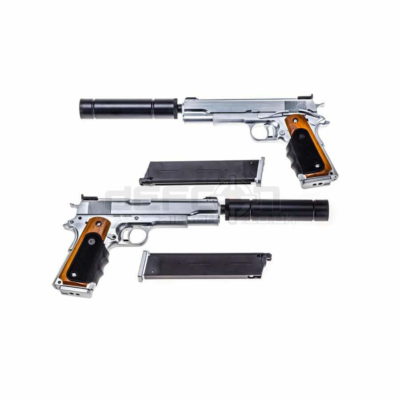 WE Galaxy 1911 Gas Blowback Pistol (Silver Frame – Sliver Slide)