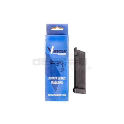 The VORSK gas magazine for VORSK 4.3 & 5.1 Hi-capa provides a reliable option for those seeking high-performance magazines for their airsoft pistols. This magazine boasts a capacity of 25 rounds and is designed specifically for the VORSK series, ensuring compatibility with all VORSK Hi-Capa models.
