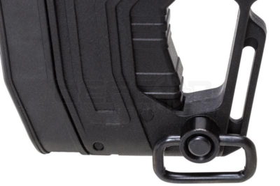 The E&C Airsoft CQB M4 Superlight Stock is designed for AR and M4 rifles and carbines. This product features a lightweight polymer construction that enhances agility during operations. It includes an ambidextrous QD sling mounting point, accommodating both right and left-handed operators.
