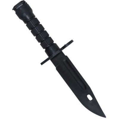 The M37 knife replica in black features a robust design suitable for various uses. The blade is made from strong yet flexible plastic, ensuring durability during training exercises. The anti-slip grip provides a secure hold, enhancing user control during activities. This dummy blade serves as an effective backup melee weapon, particularly in airsoft games where regulations allow.