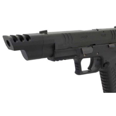 The KJWorks KP19 Hi-Capa Optic Ready with Compensator Gas Blowback Pistol combines CNC aluminium construction with a lightweight polymer frame, resulting in fast cycling and reduced recoil for competitive airsoft use. The precision-machined outer barrel and RMR-ready slide allow for seamless red dot integration, enhancing target acquisition speed.
