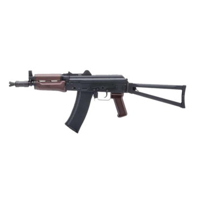 The KWA AKG-74SU GBB Rifle Faux Wood replicates the iconic AK-74SU, an updated version of Mikhail Kalashinikov’s renowned design. It fires the 5.45x39mm cartridge and features a combination of a full metal alloy receiver and high-impact polymer for enhanced functionality and durability. This rifle is faithful to its real firearm counterpart, allowing for realistic operation and field stripping.