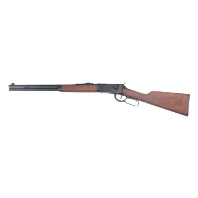 The Double Bell Winchester M1894 CO2 Powered Rifle showcases a robust metal construction with a plastic handguard and buttstock that emulate the classic wood look. This airsoft rifle delivers impressive performance with a firing velocity ranging from 301 to 350 FPS. The adjustable hop-up allows for tailored shooting precision, making it ideal for both novice and seasoned players.