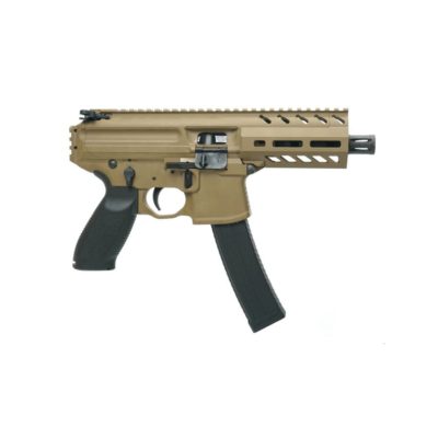 The MPX-K GBB SMG in Tan, crafted by AA/APFG, is a compact submachine gun designed for versatility in tight spaces. With a barrel length under 4.5 inches, it serves well in confined environments and urban situations. Users can customise this firearm with various accessories, thanks to its multiple rails for sights and lights.