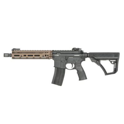 The Daniel Defence x EMG DDM4 PDW SBR Gas Blowback Rifle by Cyma CGS in Tan provides exceptional performance in the airsoft arena. This rifle utilises the advanced CYMA CGS gas system, which draws inspiration from the highly regarded TM MWS platform. Users will appreciate the enhanced durability afforded by the integration of steel components, including the trigger assembly and bolt carrier.