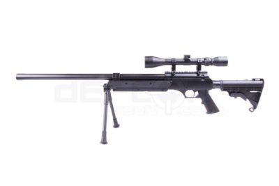 Well MB06B sniper rifle replica (with bipod and scope) Constructed from metal and plastic, the snipers body, stock and magazine holding 20 BB pellets are made of plastic. The remainder of the elements such as the barrel, the bolt, the stock’s pipeline, the cocking mechanism, the trigger and the 22mm RIS rail are made from…