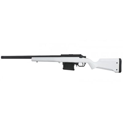 The Ares Amoeba Striker Sniper Rifle in white, model AS01-WH, represents cutting-edge design in modern firearms. This bolt-action rifle features an ergonomic full metal receiver alongside a robust nylon-fibre polymer body, combining strength and lightweight manoeuvrability. The Magpul-inspired design enhances modular capabilities, offering adjustable butt pads and exchangeable cheek rests.