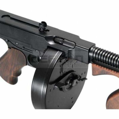 The Ares Thompson Chicago AEG EBB offers a striking combination of realistic design and advanced airsoft technology. This airsoft submachine gun features real wood elements, providing an authentic feel and aesthetic. The drum magazine allows for extended play without frequent reloading, enhancing the overall functionality during skirmishes.