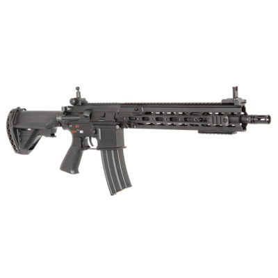 The Double Bell M4 Long features a full metal body and gearbox, providing durability and reliability. This electric rifle operates with a V2 gearbox and an adjustable hop-up mechanism, allowing users to fine-tune their aim.