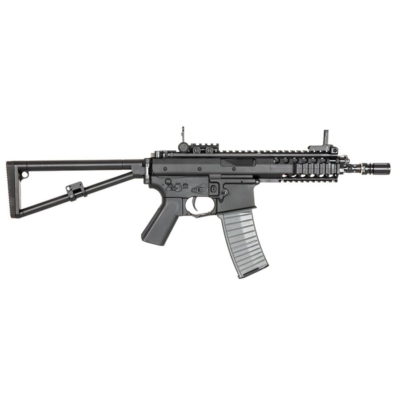 The Double Bell PDW Polymer Black offers a lightweight and agile design, ideal for dynamic operations. This replica features ample RIS Rail space, enabling users to customise with various accessories. Its ambidextrous fire selectors and magazine release cater to both right and left-handed users, ensuring versatility.