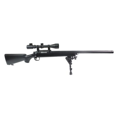 The Double Bell VSR-10 Sniper Rifle with Scope and Bipod offers remarkable precision and versatility for precision shooting. This spring-powered sniper rifle fires at 401 to 450 FPS, making it suitable for various airsoft scenarios. Crafted from a combination of metal and polymer, the rifle ensures both durability and a realistic feel.
