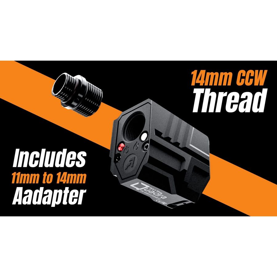 USB-C rechargeable power ensures long battery life, thus reducing downtime between skirmishes. The included 11mm CW to 14mm CCW adapter and adjustable alignment screw provide secure fitment, consequently maintaining centred, consistent tracer performance.