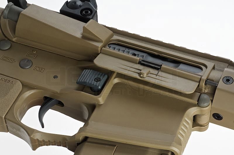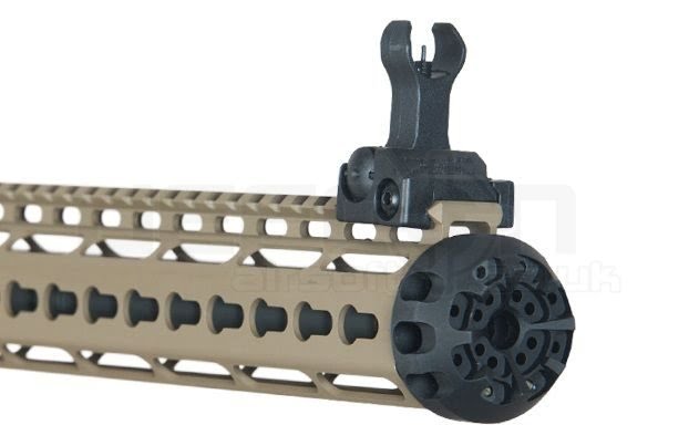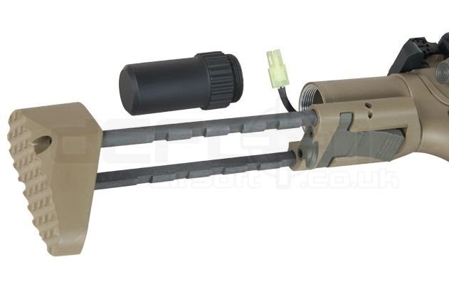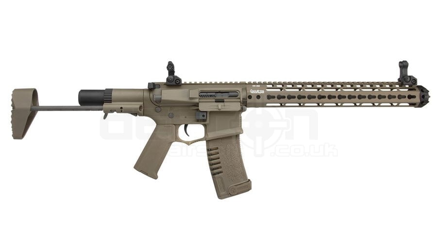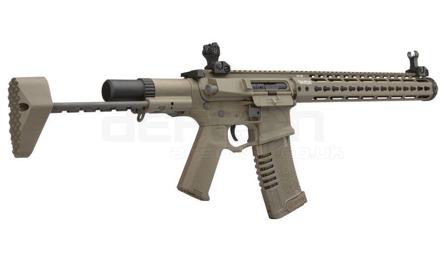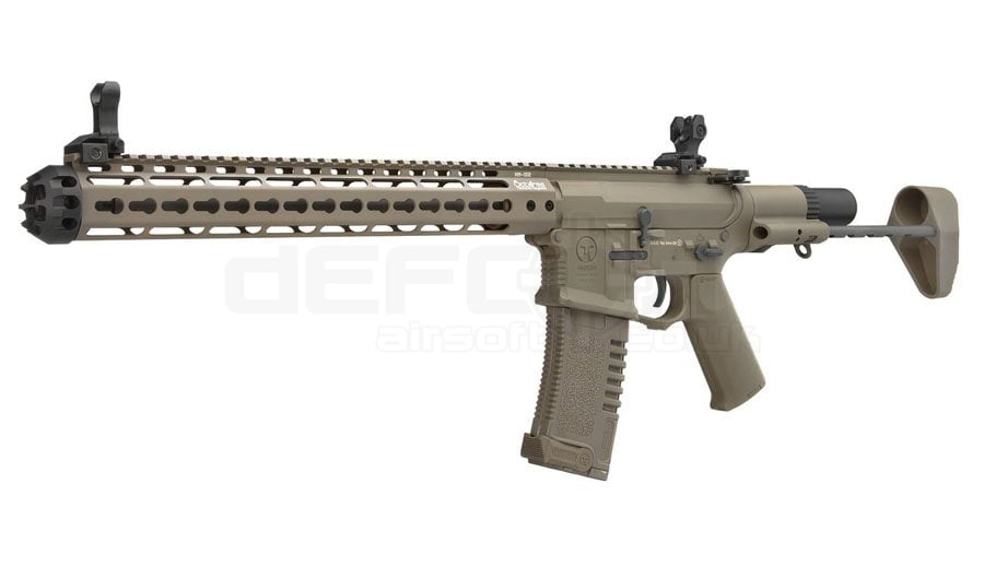 The Ares Amoeba AM-016 Octa Arms Honey Badger in Tan represents advanced design and functionality. This replica is inspired by the AAC Honey Badger, featuring a CAR-15 based structure in 0.300 AAC Blackout calibre.