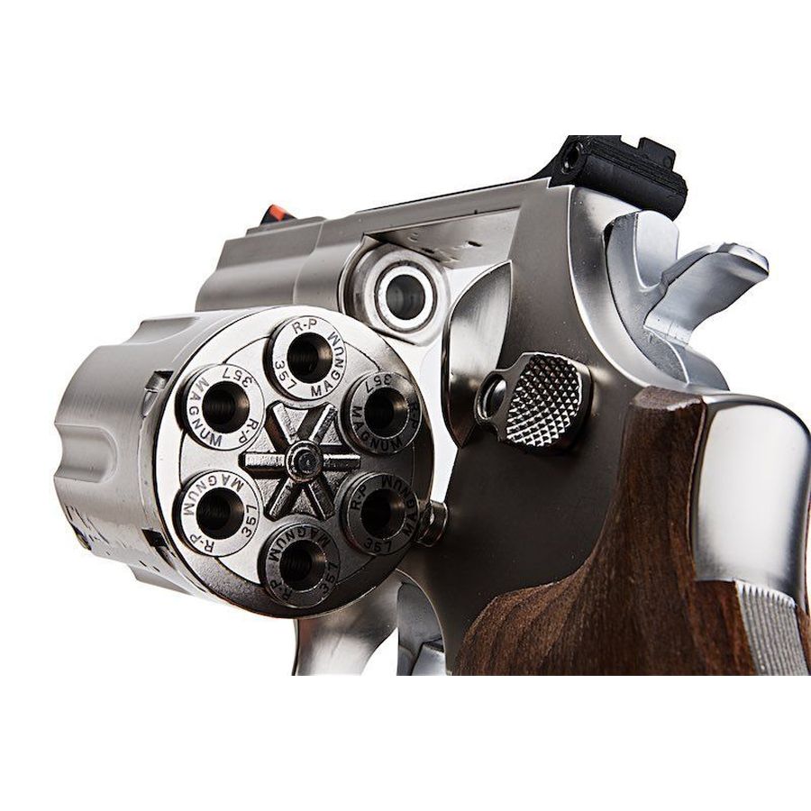 Realism defines the Ares S&W 686 replica since the cylinder swings out fully and loads with individual shells that replicate .357 Magnum cartridges. Each shell seals against the gas system through a rubber tip, therefore CO2 efficiency and shot consistency are maintained.