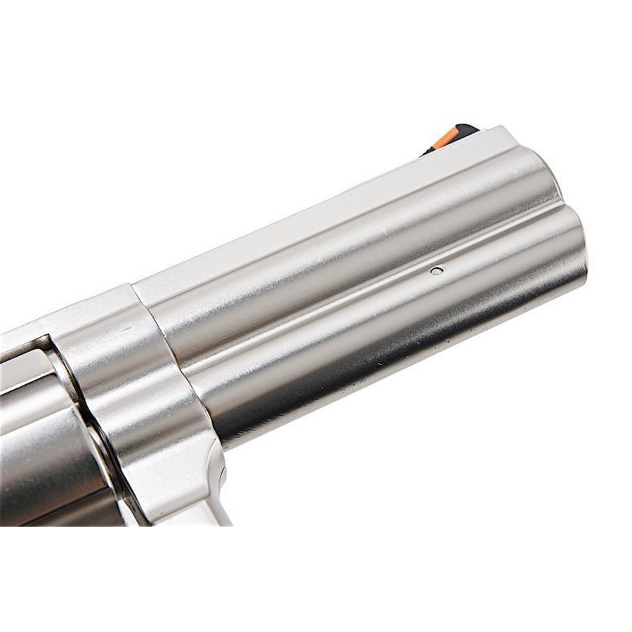 At approximately 910g, the revolver feels substantial in the hand since the frame is constructed from heavy zinc alloy and finished in a durable stainless-effect electroplating. The 3.5-inch barrel length provides balanced handling, thus bridging the gap between compact snub-nose revolvers and full service models.