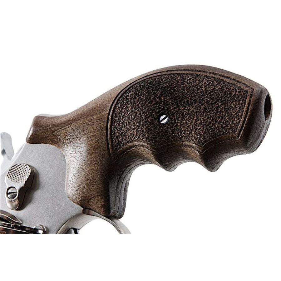 Genuine Walnut Wood Grips: Real wood grip panels house the 12g CO2 capsule, therefore the revolver maintains authentic styling and comfortable grip texture.