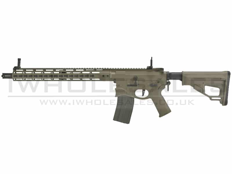 The Ares x Sharp Bros. Hellbreaker Pro. M4 15″ in tan offers an impressive combination of performance and design. This airsoft rifle features a durable construction, enabling reliable use during intensive play. It includes an ergonomic grip and a lightweight body, which allow for ease of handling and manoeuvrability.