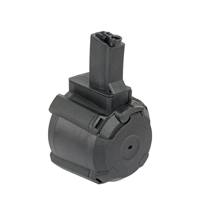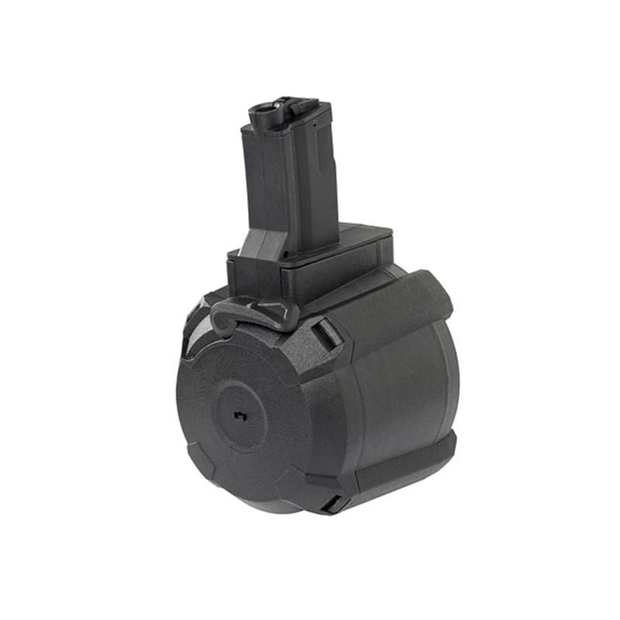 The Battleaxe Swat Series Electric Drum Magazine offers users an advanced and reliable solution for their airsoft needs. This drum magazine is specifically designed for **AEG** platforms, providing seamless compatibility with the **MP5** variant. Constructed from durable polymer, the magazine ensures long-lasting performance in various conditions.