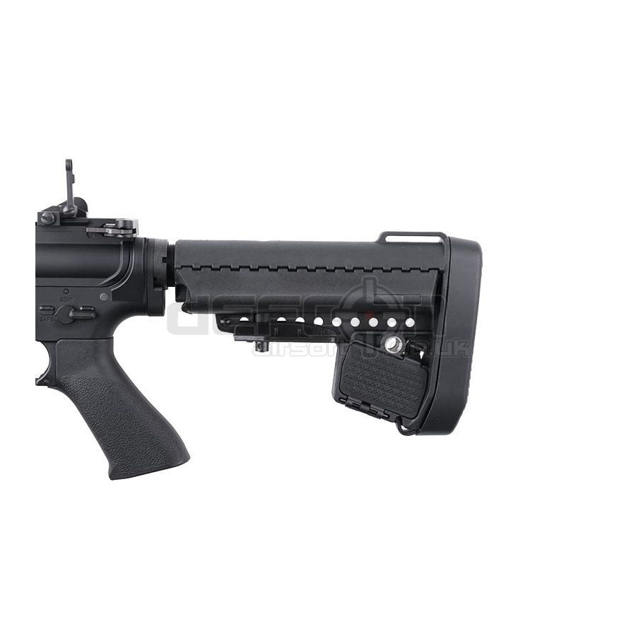 The replica features a multi-position, telescopic EMOD stock – featuring a thick, rubber stock pad and sockets for the attachment of a QD tactical sling along with a compartment for batteries or miscellaneous items. The top of the receiver features a RIS 22 mm rail with flip-up iron sights. The replica is also equipped with a URX2 handguard with an option of attaching a QD tactical sling mount. The replica comes with a steel Hi-Cap magazine with a capacity of up to 300 BBs.