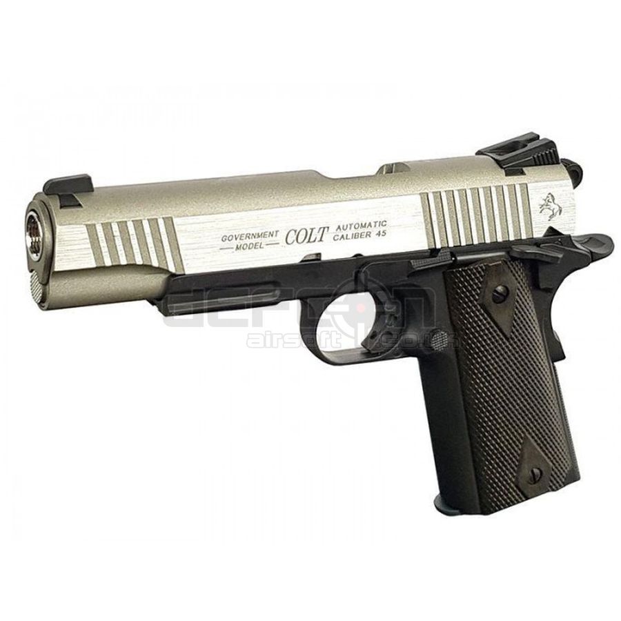 Colt 1911 (Rail) Co2 Blowback Pistol Dual Tone (Silver/Black – Cybergun – 180531)