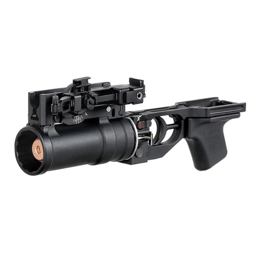 A replica of a classic, Soviet underbarrel grenade launcher – GP-25, fed with 40 mm Green Gas grenades. The grenade launcher has an integrated mount that enables attaching it underbarrel of many types of AK carbines without the use of any tools. The entirety, aside from the pistol grip, was made of metal.