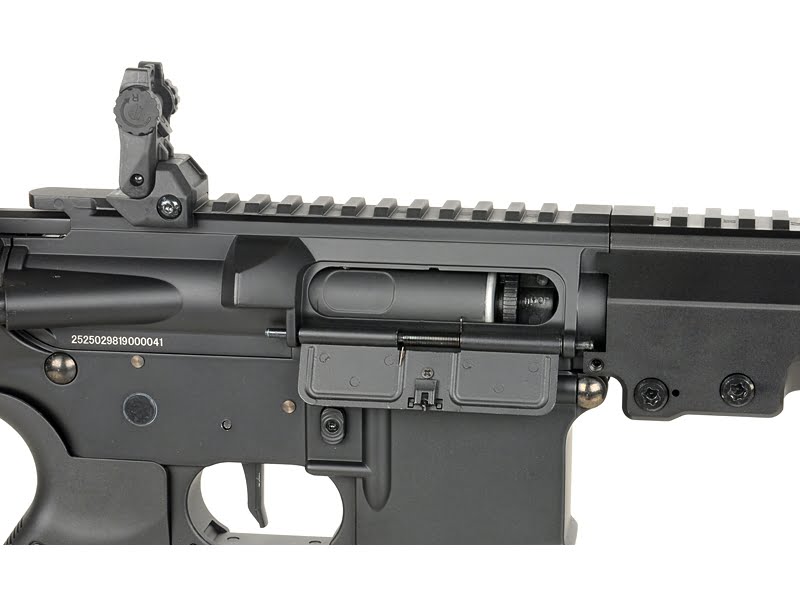 The Double Eagle M908B M-Lok M4 with Falcon Fire Control System is a high-quality airsoft rifle designed for performance and reliability. This model features a unique receiver design that contributes to its distinctive appearance.