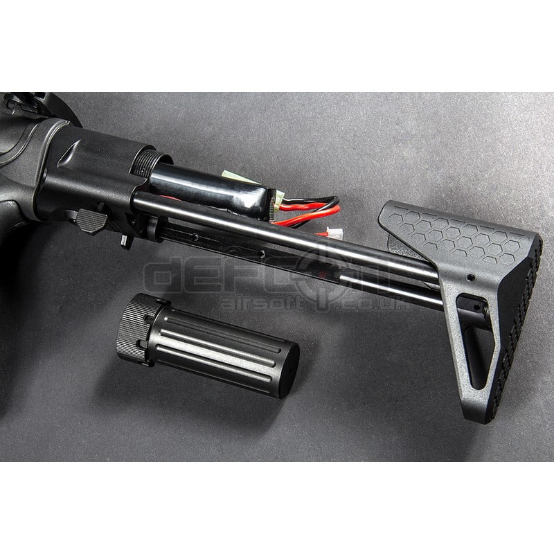 Evolution series are high end airsoft guns with Dytac aluminium RIS/RAS Systems. They all have a One piece outer barrel, innovative handle grip that allows to reach the motor without any tools, full metal Body with Original licensed Lone Star trademarks, unique serial number and Cerakote protective treatment. The gearbox is factory reinforced and include steel gear, 8mm bearings, piston with steel teeth and Standard Delayer for perfect shooting even at high speeds. With this gun you are ready to go out of the box !