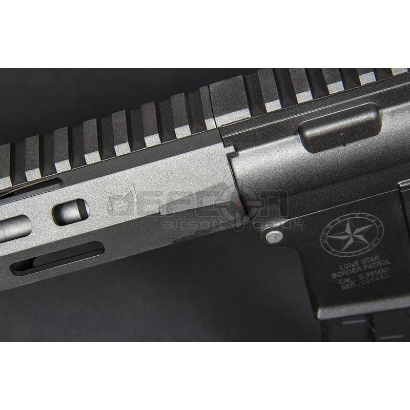 The Evolution EVO SBR PDW Lone Star Edition is a sophisticated airsoft gun designed for high performance. This model features a full metal body, which enhances durability while showcasing the original Lone Star trademarks. The Cerakote finish provides excellent resistance to wear, ensuring longevity in various conditions.
