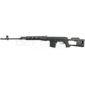 The spring action Dragunov SVD sniper rifle reproduction is made of metal and high quality polymer material which visually recreates the look of the Russian classic. The weapons body and the barrel assembly and the iron sights are made of metal, while the stock and the front grip are made of polymer. The stock is fitted with a cheek-pad, the so called “baka” which helps with getting more control for a precise shot and it enhances comfort.