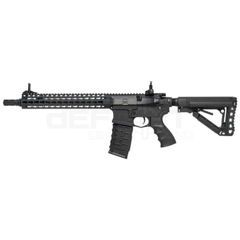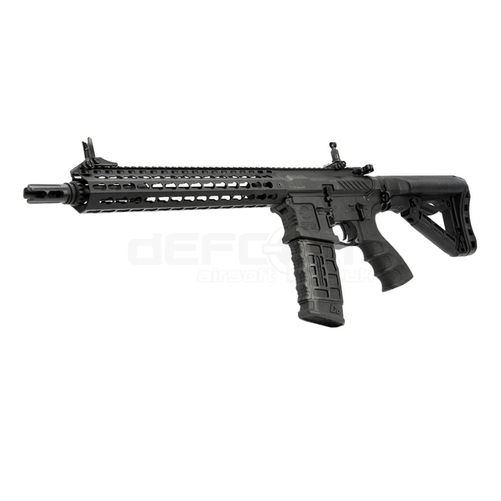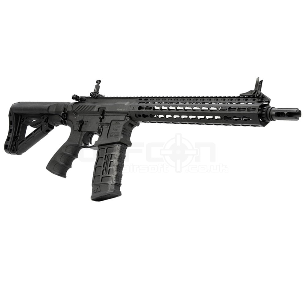 The G&G Combat Machine CM16 SRXL comes with a Keymod RIS, ambidextrous magazine release and charging handle, newly designed flip up sights and retractable stock, pre-installed mosfet, electronic trigger unit (E.T.U.) which can be programmed for a 3 round burst and a new billet style polymer receiver.
