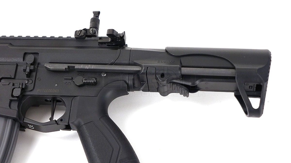 Now, the next generation Raider 2.0 is here with many improved features including a full metal gearbox, 6.04mm tight-bore inner barrel, new rotary hop up, ETU and MOSFET with programmable 3 round burst mode. Externally you’ll find a new M-LOK hand guard , high quality polymer outer body, flip-up removable front and rear iron sights and a PDW style stock from an ARP-9.