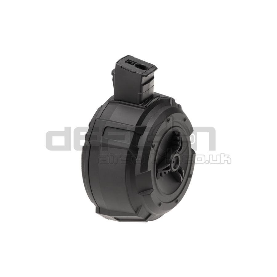 The G&G high capacity drum magazine is designed to work with the PRK9 AEG series. The magazine is easy to operate and can easily be wound for loading.