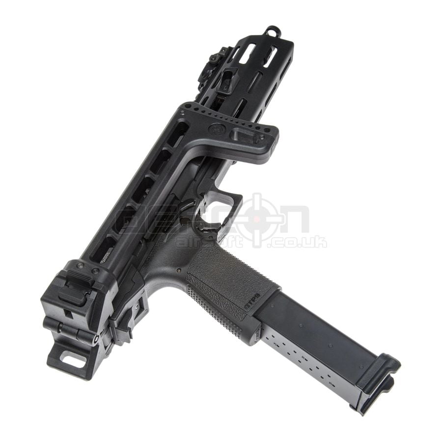 The G&G SMC-9 9mm Carbine Gas Blowback represents a significant innovation in airsoft technology. This conversion carbine kit is designed from the ground up, offering a unique integration with the GTP-9 gas blowback pistol. Unlike traditional clam shell designs, the SMC-9 stands as an independent product, providing enhanced functionality and performance.