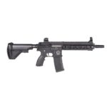 The Golden Eagle/JG G39C Sports Line in black is crafted to deliver remarkable performance for airsoft players. This model shares construction elements with the widely respected JG G36 and G39, ensuring reliability and quality. It operates at a velocity of 330 FPS, generating approximately 1 joule, which provides a solid balance of power and accuracy.