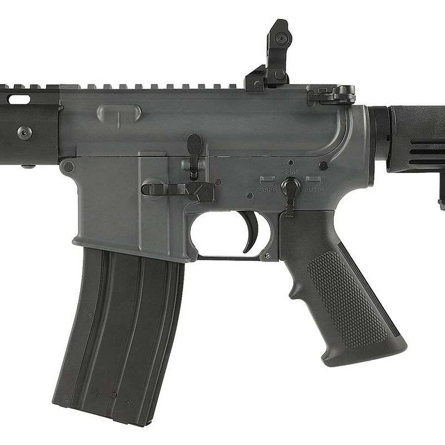 At 2,410g, the rifle offers a balanced feel that suits both fast-paced CQB environments and open-field engagements. Its Black/Grey finish complements modern tactical loadouts, since the anodised surfaces resist wear and preserve a clean aesthetic over time.