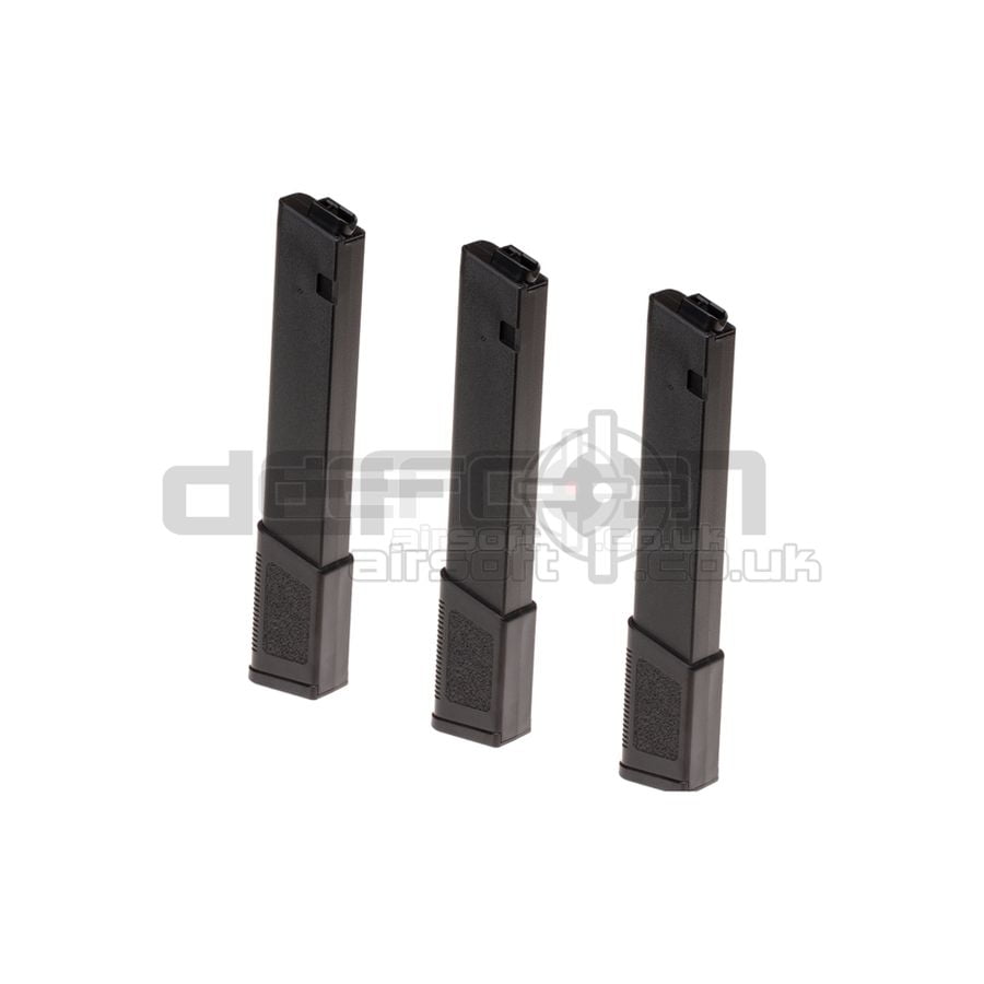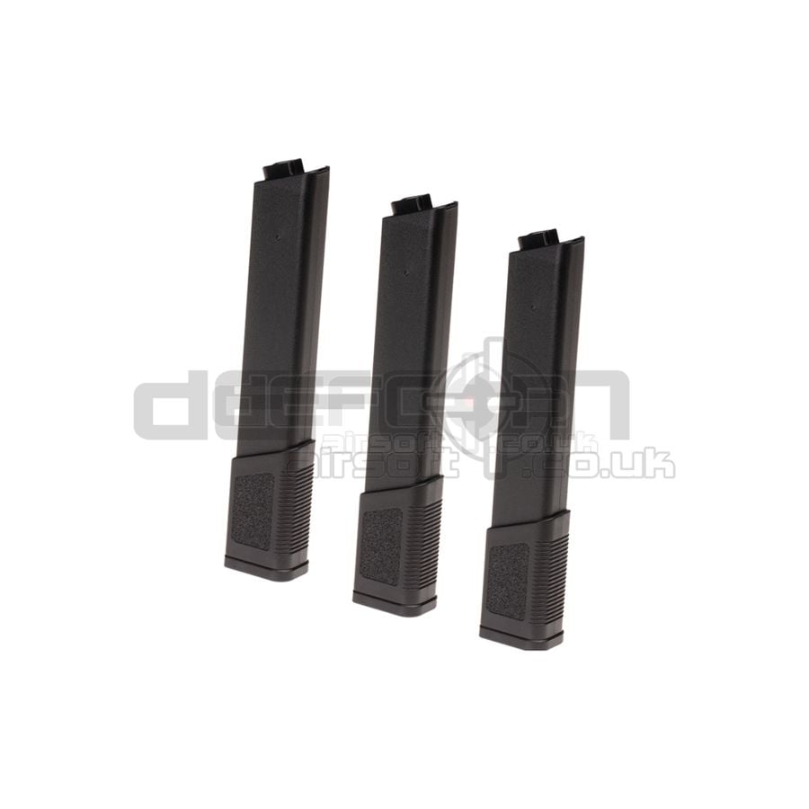 The KWA TK.45 Midcap Magazine 120rds 3-pack in Black provides reliable performance for airsoft players. This set includes three KWA Tekken TK.45 magazines, each capable of holding 120 rounds. The magazines are specifically designed for compatibility with the TK.45 airsoft rifle, ensuring seamless feeding and function during gameplay.