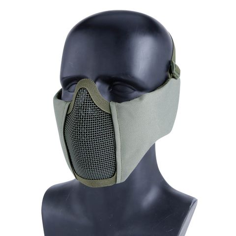 The Nuprol Mesh Lower Face Shield V5 – Green offers full lower-face protection with a reinforced steel mesh and padded cheek panels. It shields the nose, mouth, and ears while allowing airflow, which helps reduce fogging during extended skirmishes.