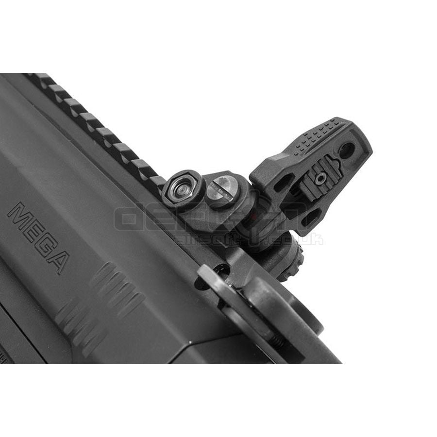 The PTS Mega Arms MML MATEN Gas Blowback Rifle embodies the unique design of the Mega Arms MML AR-10 platform. It features a robust combination of a 14-inch MLOK compatible aluminium rail and a billet style aluminium receiver. This design provides remarkable strength and rigidity similar to a monolithic upper.