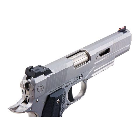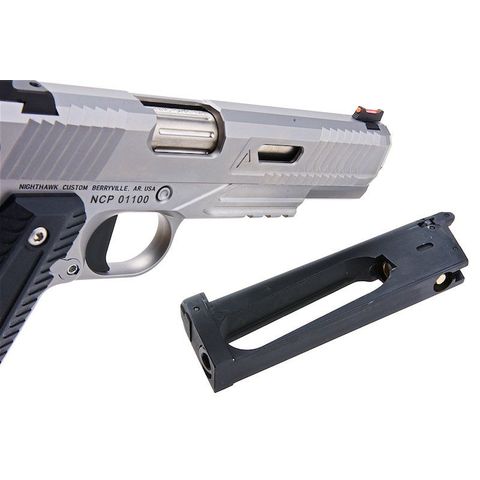 Built under Nighthawk Custom’s philosophy of “One Gun, One Gunsmith”, each pistol is individually hand-finished to ensure an exceptional fit and buttery-smooth cycling. Because every part is machined oversized and then refined by hand, the result is a sidearm with tight tolerances and a recoil impulse that feels astonishingly authentic. The CO2-powered system produces immense blowback, creating the hardest-kicking airsoft pistol currently available.
