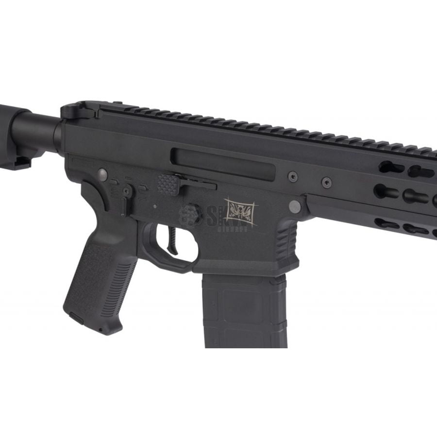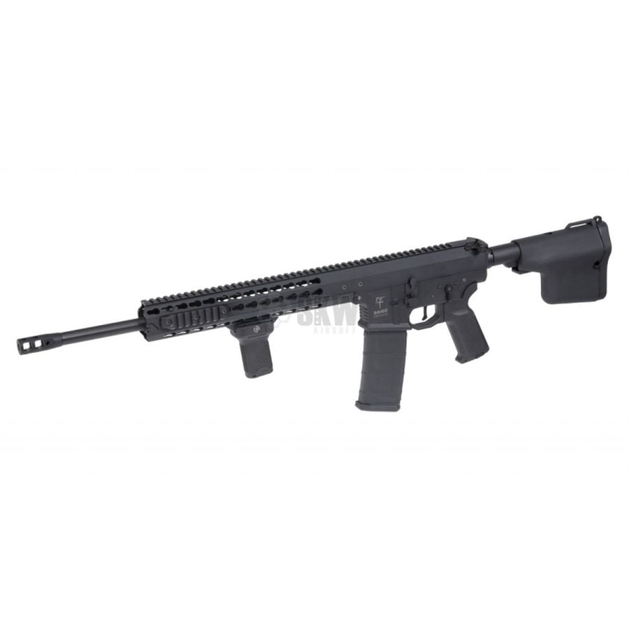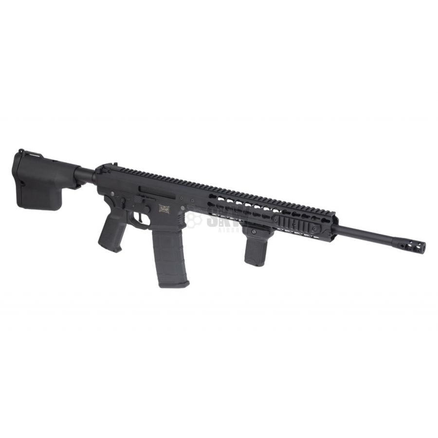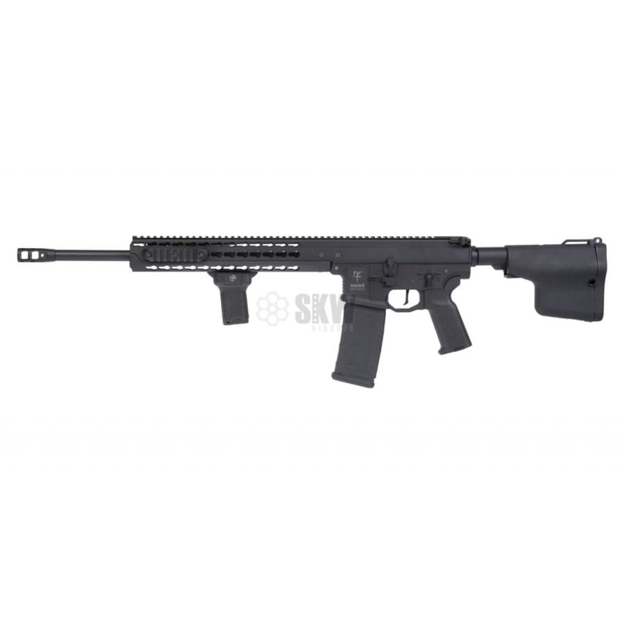 The Saigo Defence Bushido MEIYO DMR AEG in black offers a durable construction combining metal and polymer materials. This robust airsoft rifle measures between 870 and 960 millimetres in length and weighs 2720 grams.