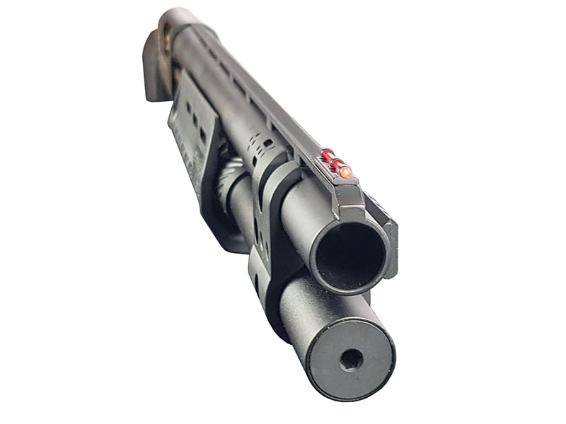 Capable of mixing and matching shell loads per-user preference. Can fire up to 12x 6mm BBs with one pull of the trigger w/ realistic shot patterning; resembles standard defensive loads; realistically ejects and loads shells like an actual pump-action shotgun